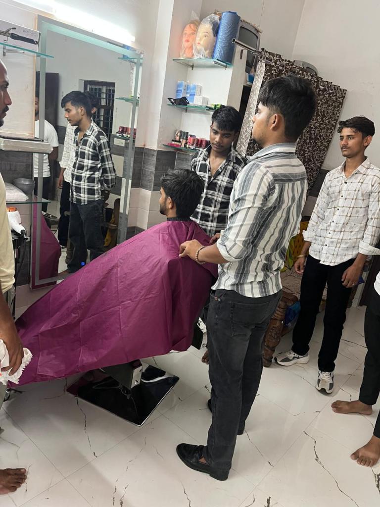 In the first phase, SNU fully sponsored a professional month-long salon training course for these 15 men through a reputed grooming institute. The training covered haircutting, shaving, hygiene, customer handling, salon management, and modern styling techniques.