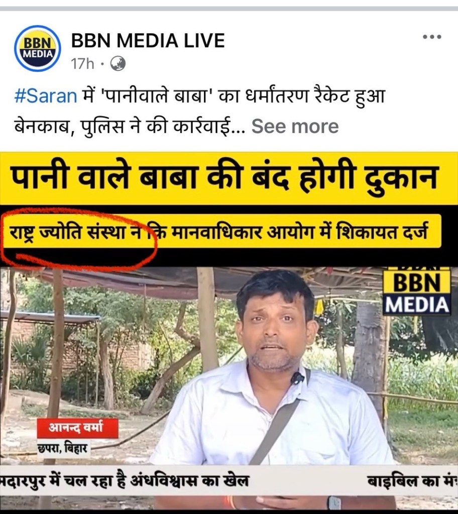 - Rashtra Jyoti exposed and dismantled a large-scale faith-healing conversion racket in Saran district, Bihar, led by a pastor locally known as “Paniya Baba”.
